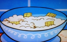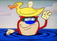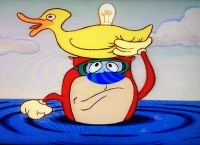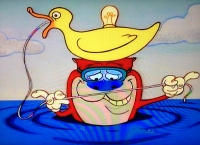 In der Badewanne benutzt Stimpy seinen speziellen Entenhelm, um auf die Fragen der Zuschauer einzugehen.
