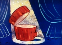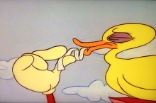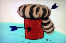 Stimpy blässt sich auf und Ren sticht ihn mit einer Nadel.