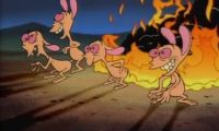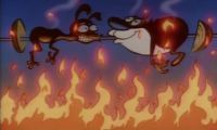 Stimpy bereitet eben das Essen für Ren zu, als er sich in den Hauptgang, ein