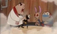 Situation abfinden und jammert ständig. Ren wirft ihn raus. Stimpy lernt