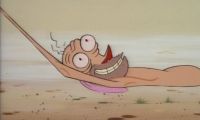 finden Zuflucht in einem gestrandeten Wal. Stimpy kann sich nicht mit der