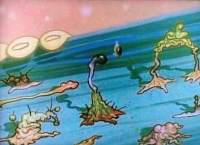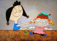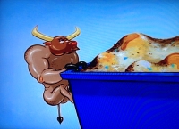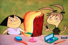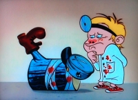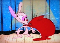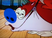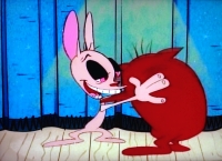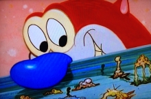 Stimpy blässt sich auf und Ren sticht ihn mit einer Nadel.