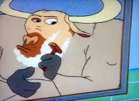 Stimpy beschäftigt sich mit seiner Nasenkoboldsammlung.