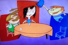 Ren und Stimpy leiden unter seinen strengen Erziehungsmethoden. Es artet so weit aus, das Ren zu einem Ruder greift und damit auf George einschlägt.
